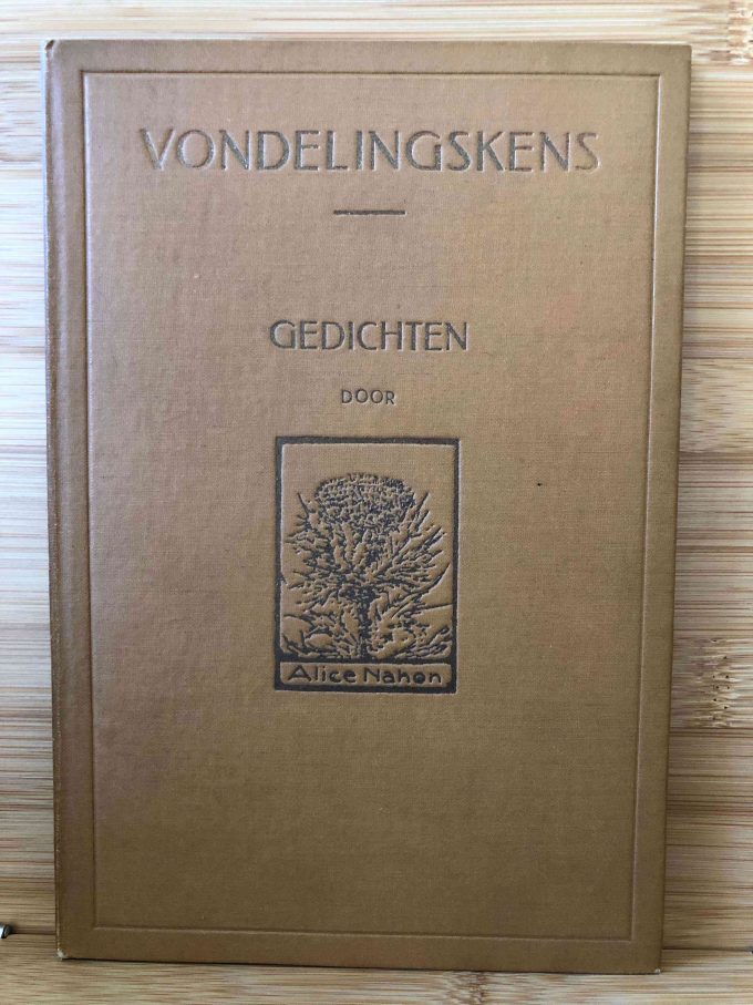 Alice Nahon’s “Vondelingskens” is a poetry collection published in 1923 by De Nederlandsche Boekhandel in Antwerp and A. W. Sythoff in Leiden. This fourth edition consists of 59 pages and measures 14 cm by 20.5 cm. The book is in excellent condition with a hardcover.