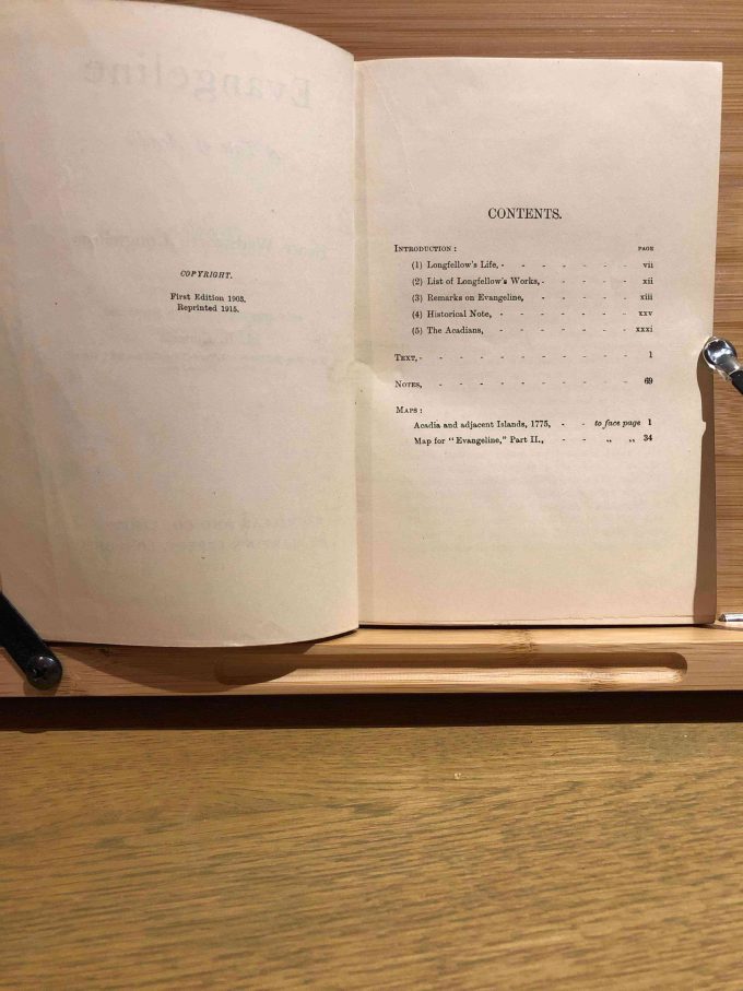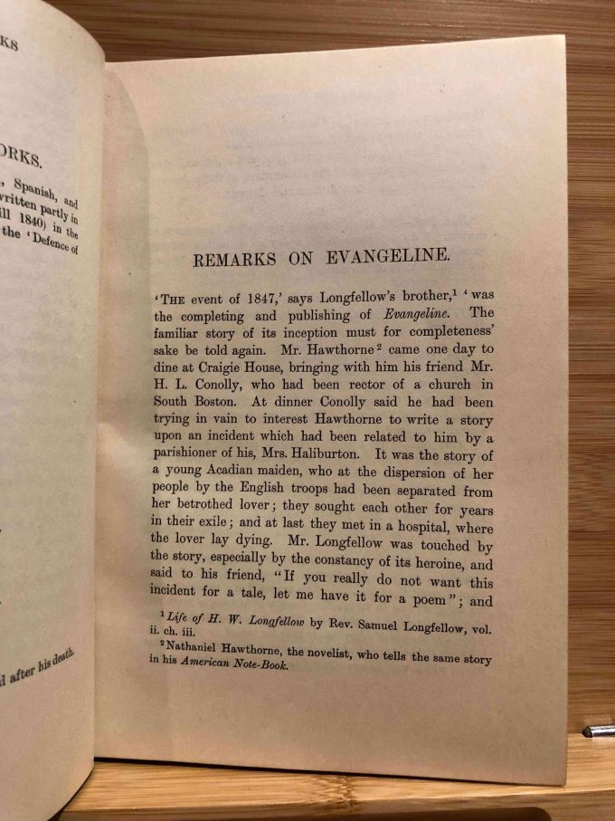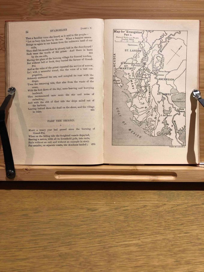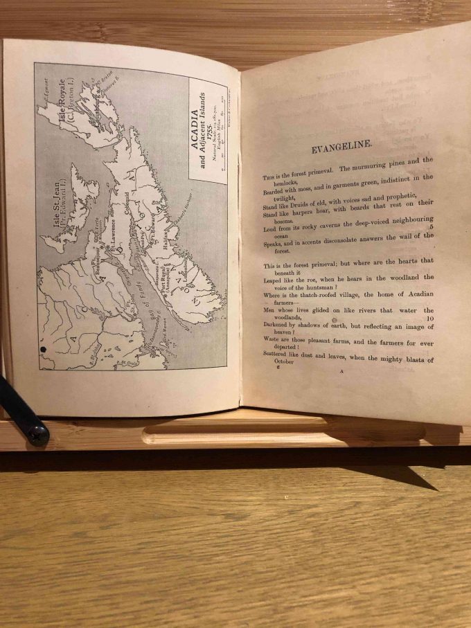 The poem is written in unrhymed dactylic hexameter, possibly inspired by Greek and Latin classics, including Homer, whose work Longfellow was reading at the time he was writing “Evangeline.” He also had recently translated “The Children of the Lord’s Supper,” a poem by Swedish writer Esaias Tegnér, which also used this meter. “Evangeline” is one of the few nineteenth-century compositions in that meter which is still read today.