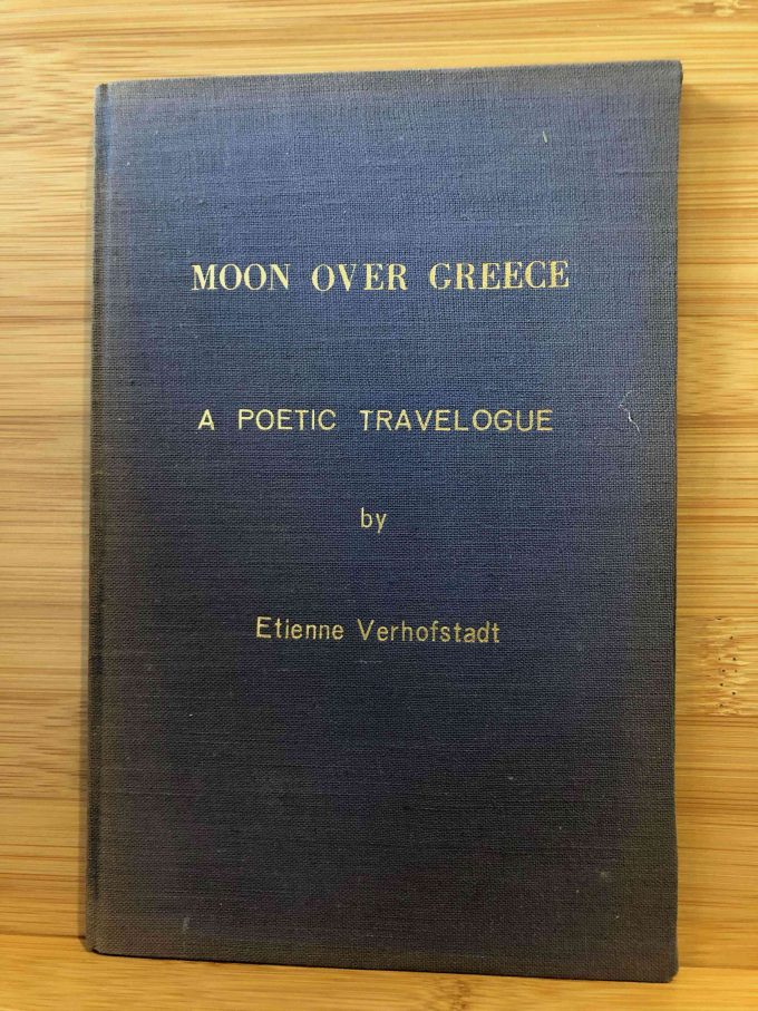 Moon over Greece is een zeer zeldzame dichtbundel van Etienne Verhofstadt, gepubliceerd door Alpha in Antwerpen. De exacte publicatiedatum is onbekend. Het boek, bestaande uit 22 pagina’s, is een eerste editie en meet 12,7 cm x 19,2 cm. Dit exemplaar is in uitstekende staat (Fine) en heeft een harde kaft. Slechts drie bekende exemplaren van de originele oplage van 100 exemplaren zijn geïdentificeerd, wat de bundel uiterst zeldzaam maakt.