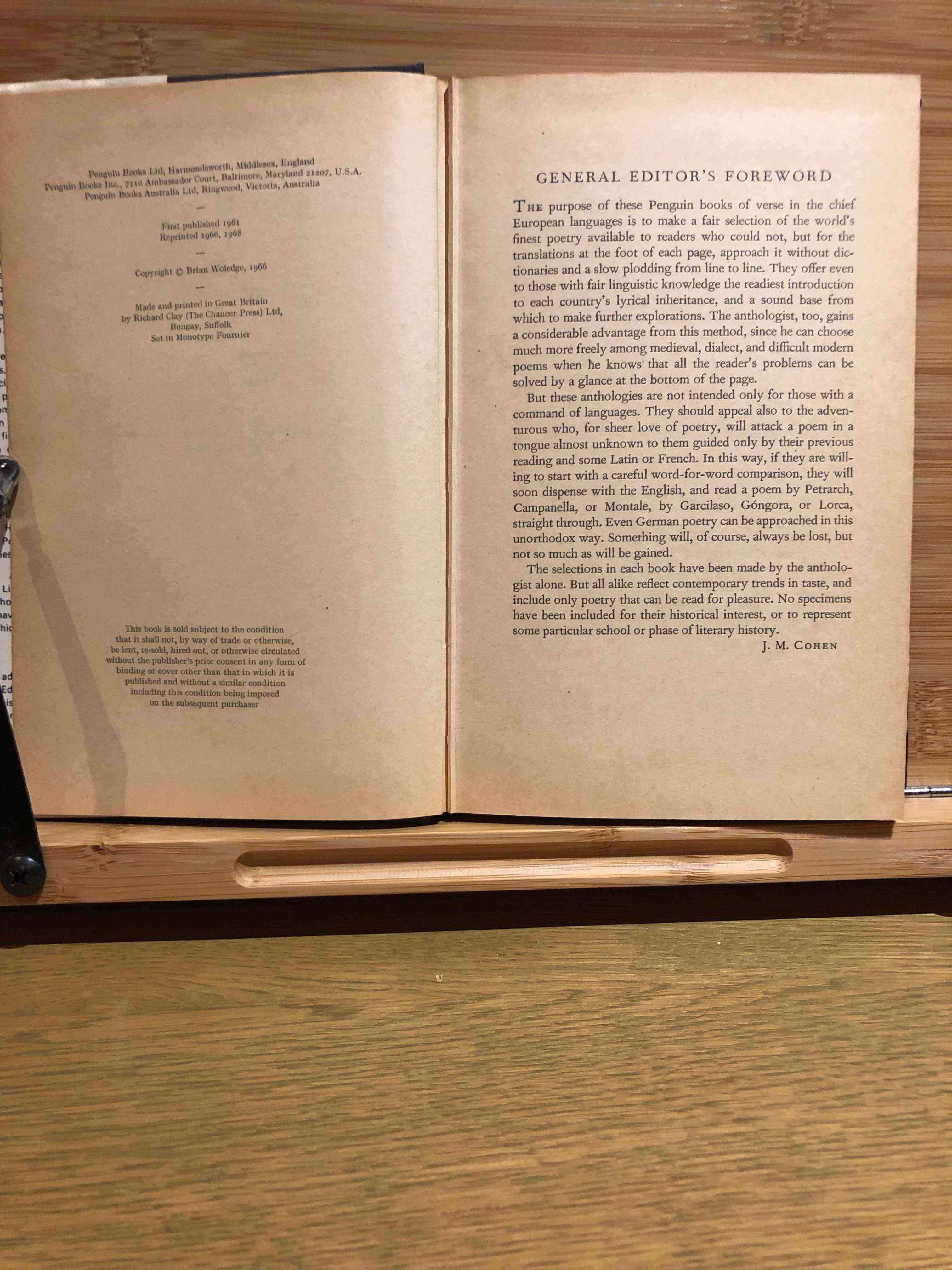 The Penguin Book of French Verse – 1. To The Fifteenth Century, introduced and edited by Brian Woledge, is a comprehensive collection of French poetry published by Penguin Books in 1968 and printed by The Chaucer Press in Bungay. This third edition contains 341 pages and includes plain prose translations of each poem, making it accessible to readers who are not fluent in French. The volume measures 12.5 cm by 19 cm and is in fine condition, with a softcover and a dust jacket.
