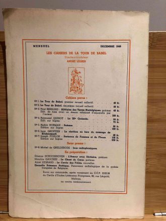 Les invitées du temps (The Guests of Time) is a collection of poems by Noëlle Lans, published in 1975 by André De Rache. This book, consisting of 50 pages, is a first edition and measures 16.5 cm x 25.5 cm. The volume is in excellent condition (Fine Plus) with a sewn softcover. It contains twelve ink illustrations by Elisabeth Geurden. The book is signed and dedicated by both the author and the artist.