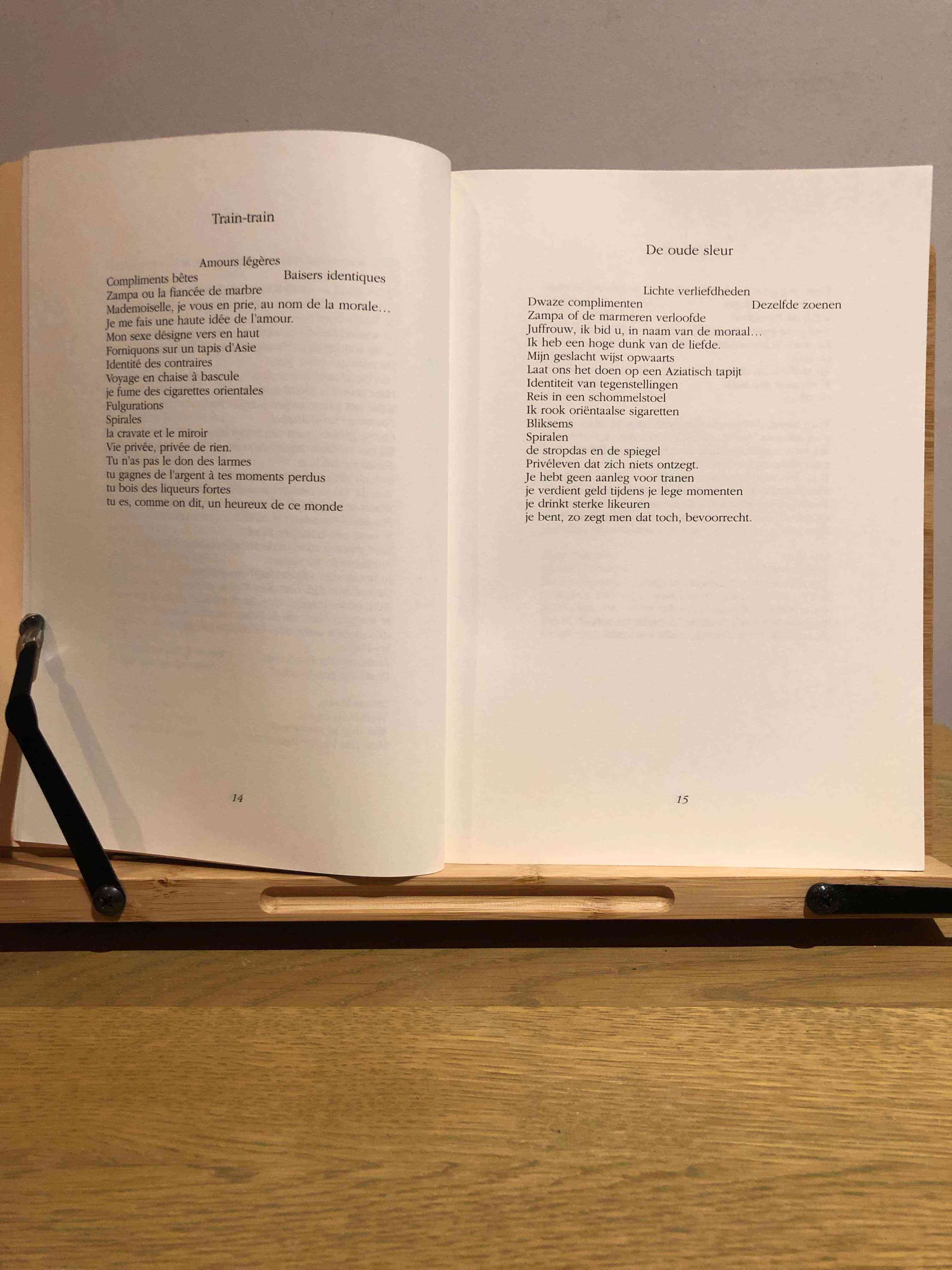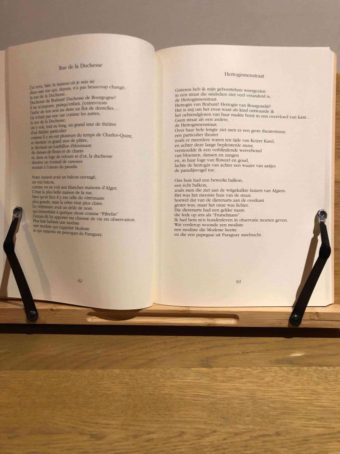 In this book, Neuhuys’ French texts are placed alongside Jespers’ Dutch translations. The collection includes poems from various volumes such as Le canari et la cerise (1921), Le zèbre handicapé (1923), L’arbre de Noël (1927), and many others. The poems show Neuhuys’ evolution from surrealist poetry to a simpler style, while retaining his characteristic humor, vibrancy, and paradoxical blend of emotionality and cheerfulness.