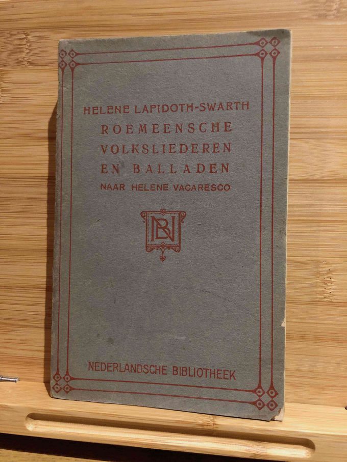 Hélène Lapidoth-Swarth’s Roemeensche volksliederen en balladen, verzameld door Hélène Vacaresco en in het Nederlands bewerkt naar Frans proza, is een bundel uitgegeven rond 1909 door de Maatschappij voor goede en goedkope lectuur in Amsterdam. Deze eerste editie bestaat uit 366 pagina’s en heeft een formaat van 12 cm bij 18,5 cm. Het boek verkeert in goede staat, hoewel de achterkant van de kaft gescheurd is. Het heeft een zachte, genaaide kaft.